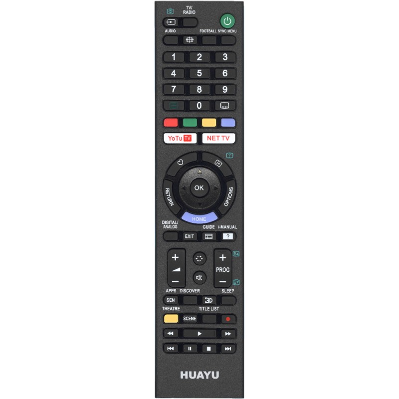 Универсальный пульт Huayu для Sony URC1518 (RMT-TX102D) – это универсальный пульт, который заменяет множество пультов определенного бренда. В основном эти пульты не требуют настройки, просто вставили батарейки и пользуетесь, но иногда, когда настройка все-таки необходима, она сводится к нажатию всего двух клавиш. Из чего можно сделать вывод, что им могут пользоваться даже люди далекие от электроники. Его корпус очень часто совпадает с корпусом вашего родного пульта, поэтому у вас не будет привыкания к расположению на нем кнопок. Все они находятся на привычных местах.